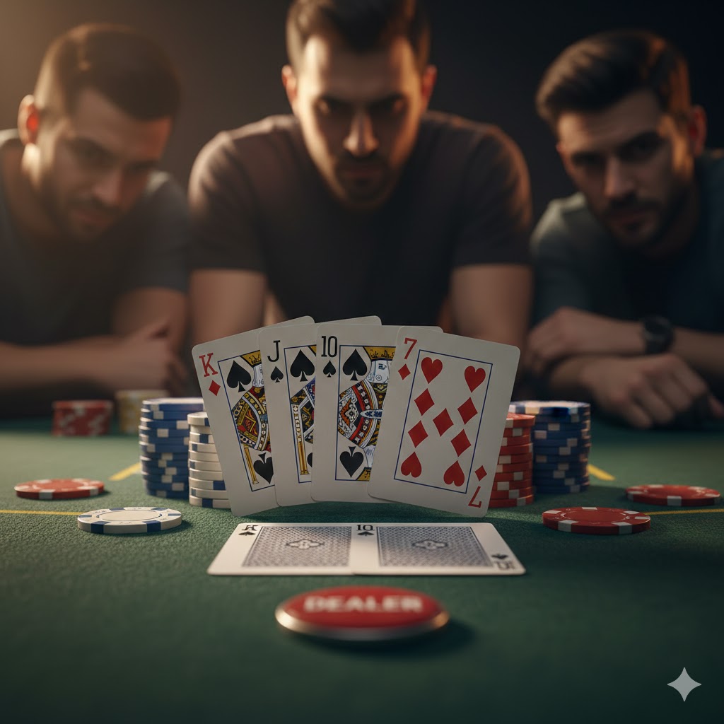 - Grunnmekanikk: Innsatsrunder basert på kortenes verdi og bløffing.